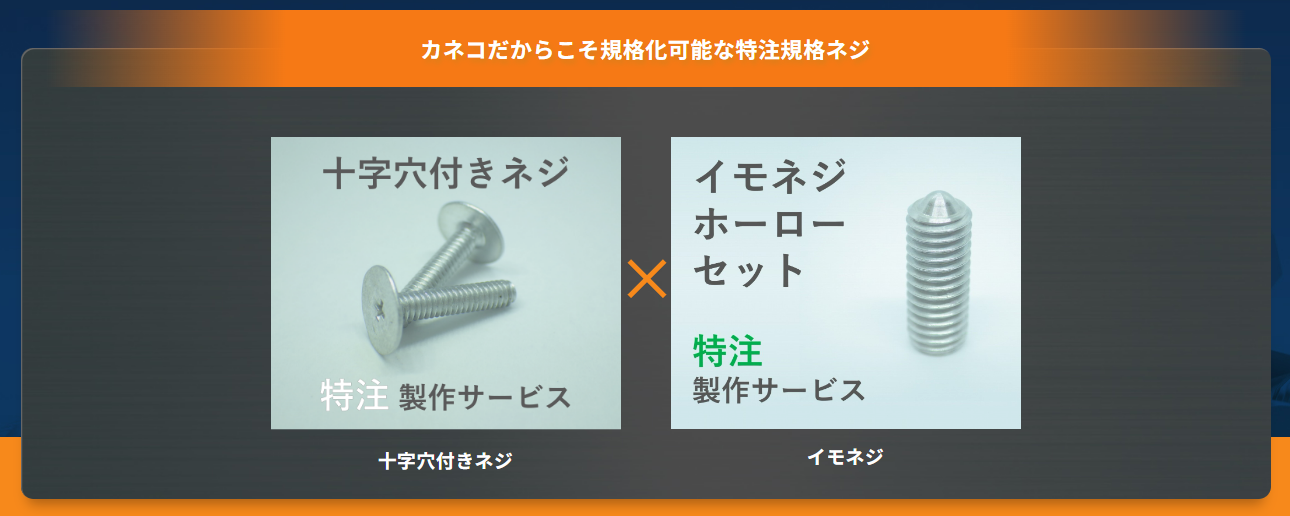 カネコだからこそ規格化可能な特注規格ネジ『十字穴付きイモネジ』