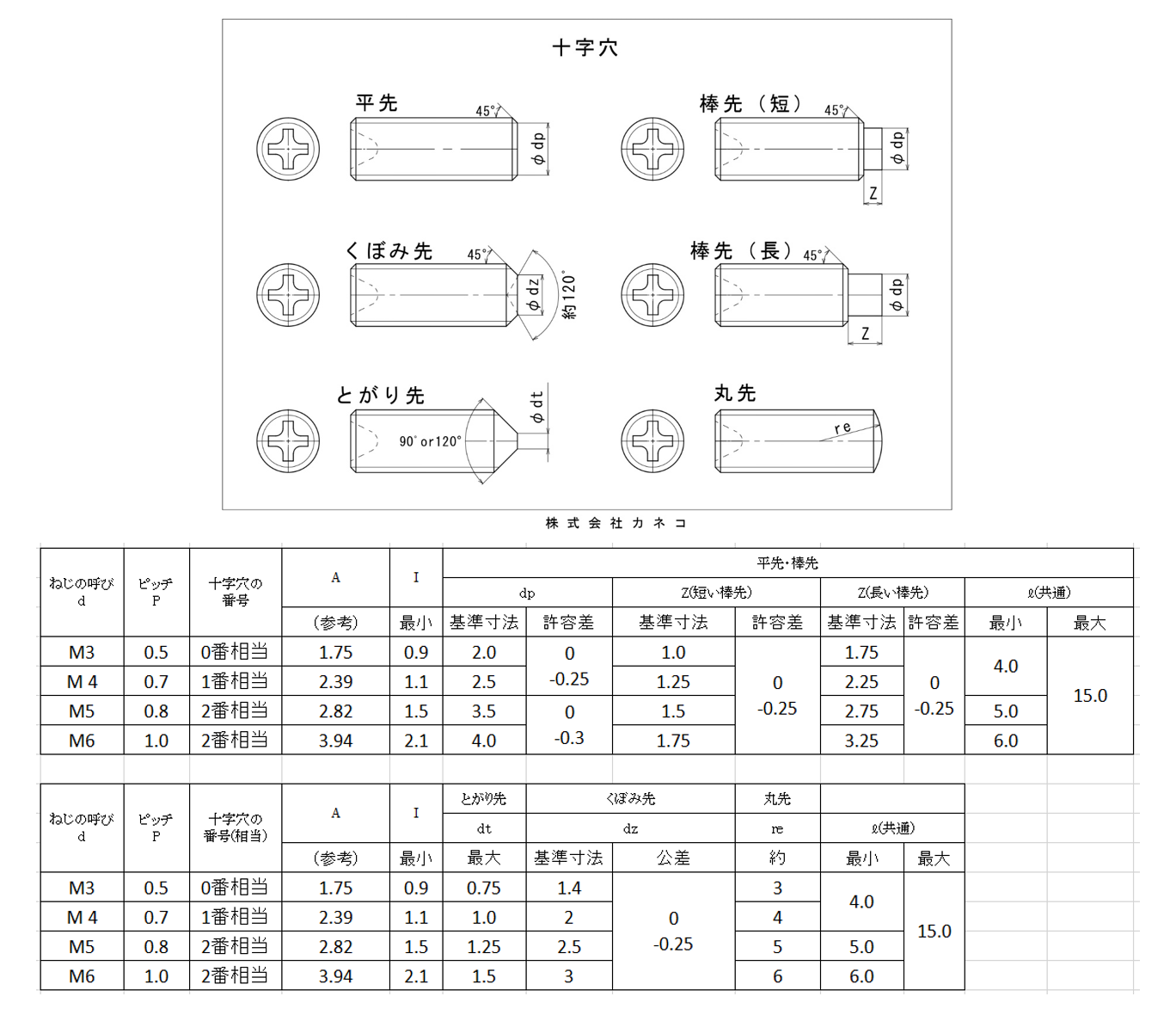「十字穴で様々な先端形状のイモネジがほしい...」、そのお悩み、カネコにお任せ!